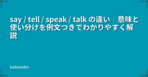 also / too / as well、say / tell / speak / talk など、似た英語表現の違いをまとめています。