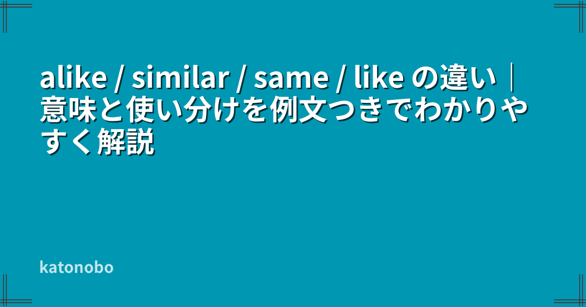 また、alike の詳しい使い方を単体で確認したい方は、alike の使い方|意味・similar / same との違いを例文つきでわかりやすく解説も参考になります。