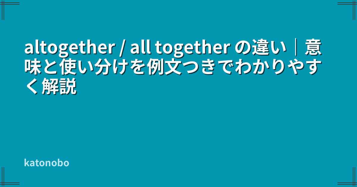 この記事では、altogether / all together の違いを、初心者にもわかりやすく整理していきます。
