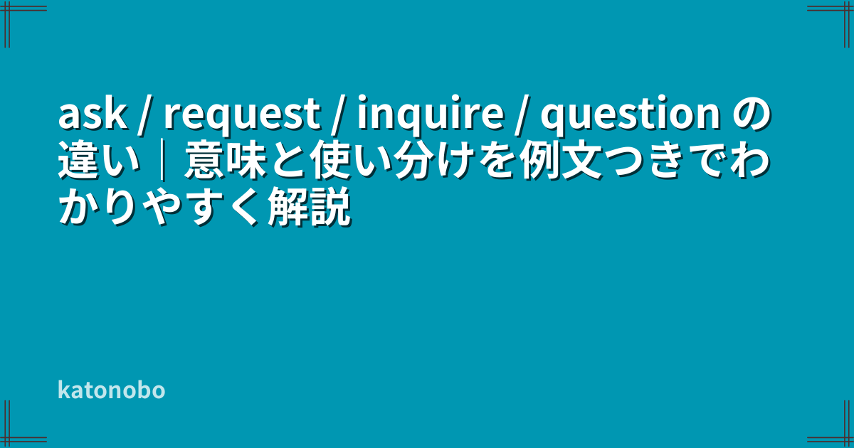 この記事では、ask / request / inquire / question の違いを、初心者にもわかりやすく整理しながら、意味・使い分け・自然な例文・よくある間違いまで解説します。