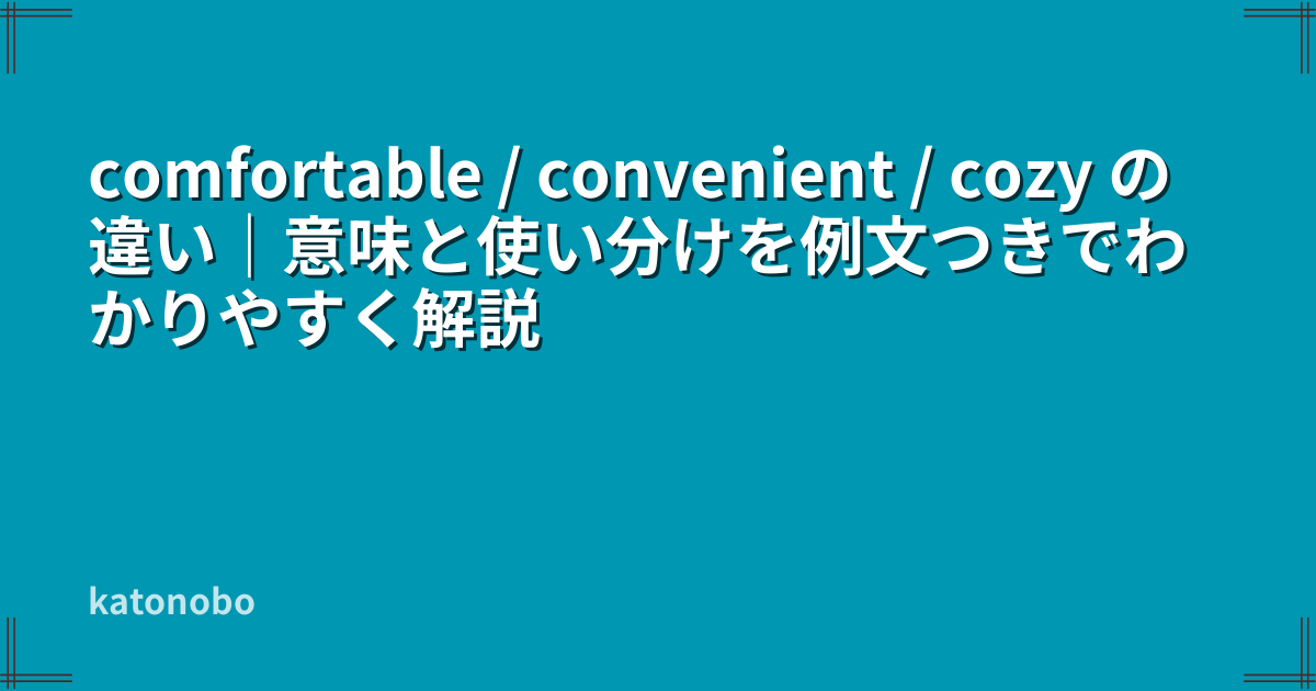 この記事では、comfortable / convenient / cozy の違いを、初心者にもわかりやすく整理しながら、意味・使い分け・自然な例文・よくある間違いまで解説します。