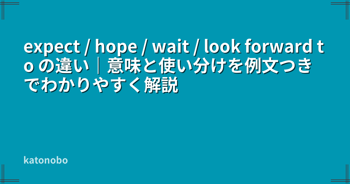 この記事では、expect / hope / wait / look forward to の違いを、初心者にもわかりやすく整理しながら、意味・使い分け・自然な例文・よくある間違いまで解説します。