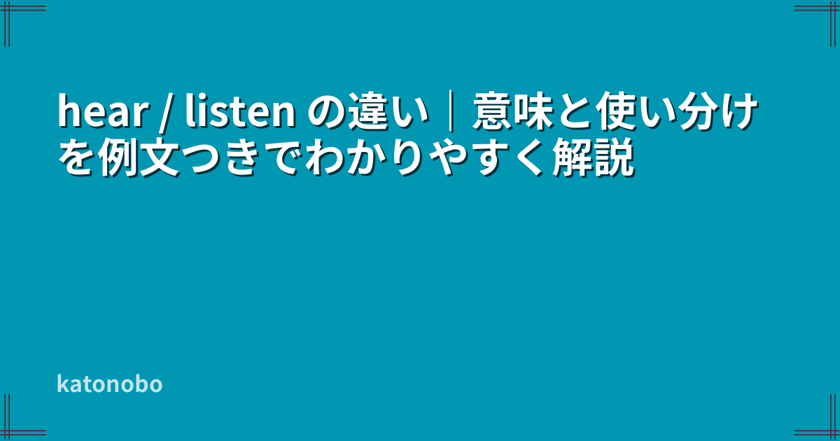 この記事では、hear / listen の違いを、初心者にもわかりやすく整理していきます。