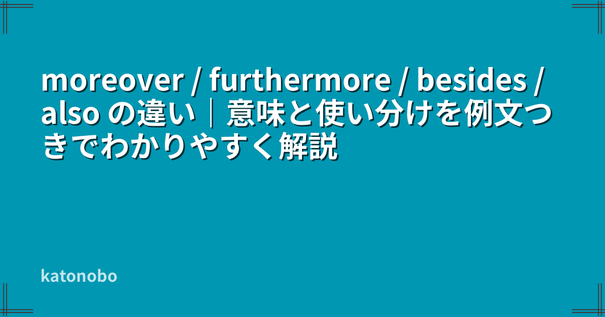 この記事では、moreover / furthermore / besides / also の違いを、初心者にもわかりやすく整理しながら、意味・文のかたさ・使い分け・自然な例文まで解説します。