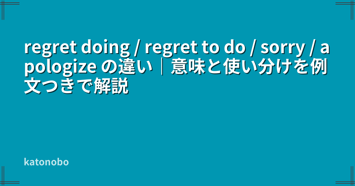 この記事では、regret doing / regret to do / sorry / apologize の違いを、初心者にもわかりやすく整理しながら、意味・使い分け・自然な例文・よくある間違いまで解説します。