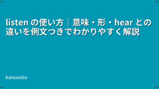 listen は「意識して聞く」「耳を傾ける」という意味で使う英語の基本動詞です。hear と似ていますが、listen は自分から注意して聞くときに使います。この記事では listen の意味、listen to の形、hear との違いを例文つきで初心者向けにわかりやすく解説します。