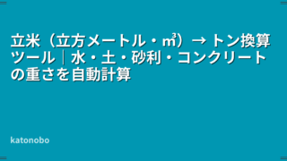 ブラウザツール 立米(立方メートル・㎥)→ トン換算ツール|水・土・砂利・コンクリートの重さを自動計算