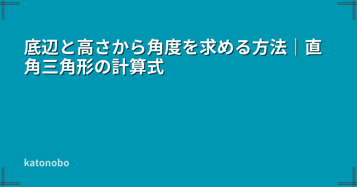 底辺と高さから角度を求めるには、直角三角形として考え、arctanを使います。テーパー角度、傾斜、勾配、図面上の角度確認などでよく使う計算です。