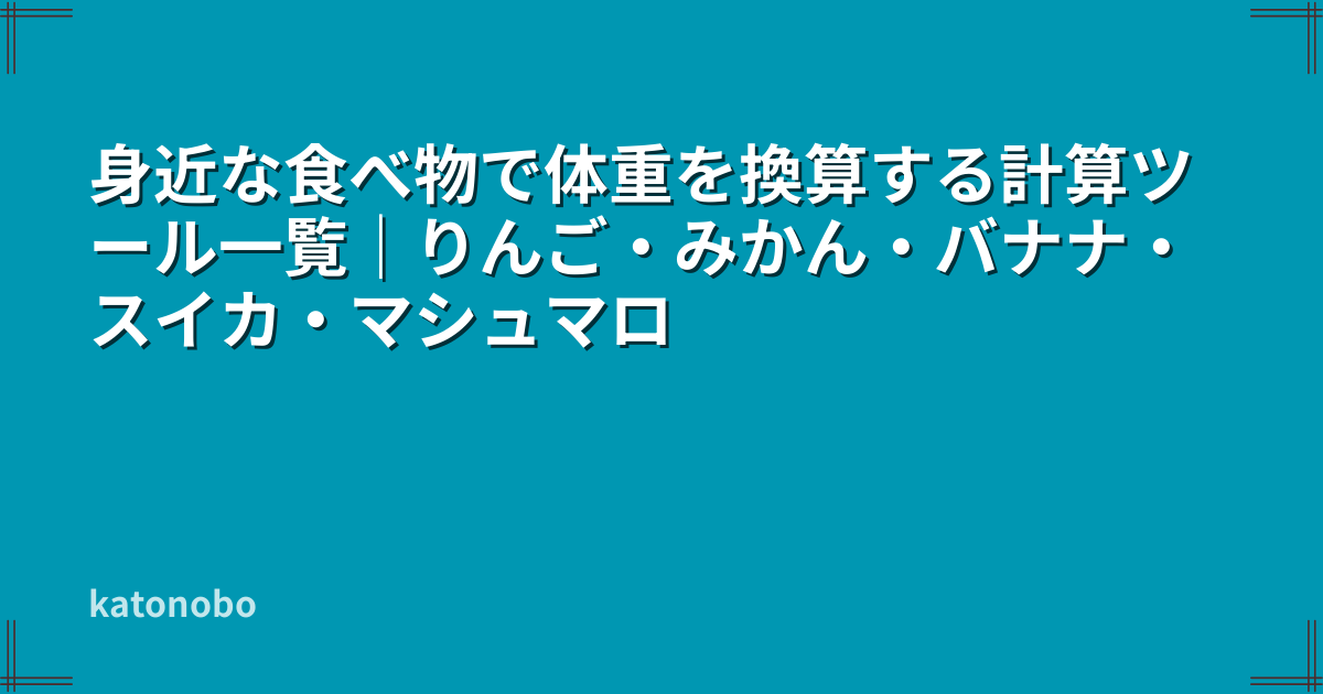身近な食べ物で体重を換算する計算ツール一覧|りんご・みかん・バナナ・スイカ・マシュマロ