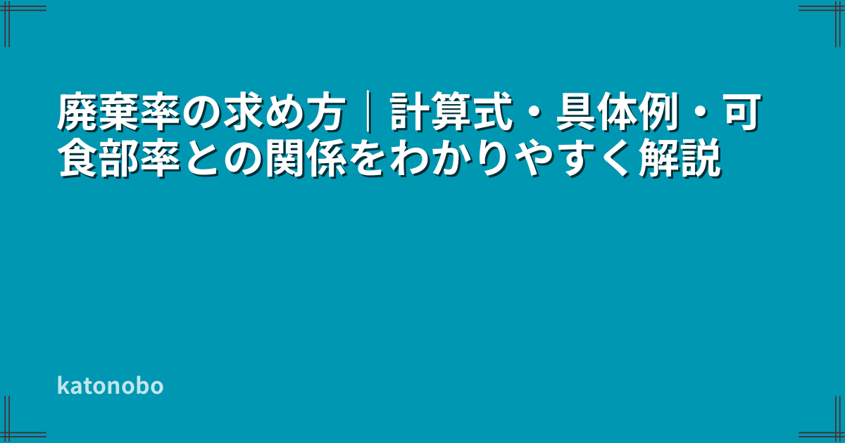 このページでは、廃棄率の計算式、具体例、可食部率との関係、よくある間違いをわかりやすく解説します。
