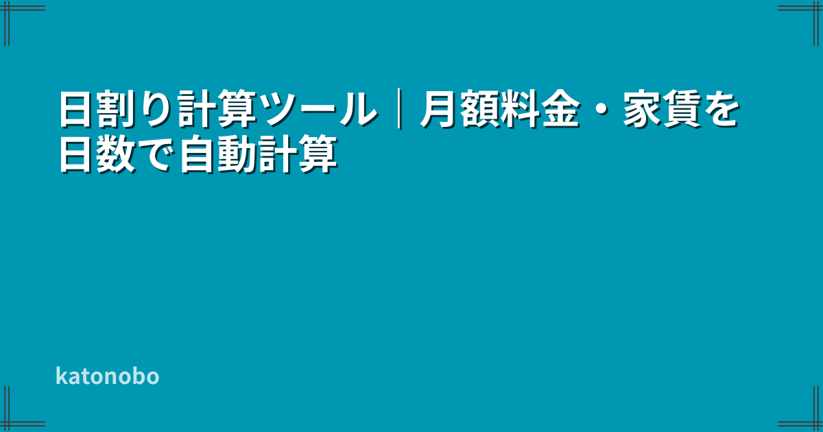 月額料金・家賃・サブスク費用などを、対象日数に応じて自動計算できます。分母日数、日数の数え方、丸め処理、結果コピーに対応しています。