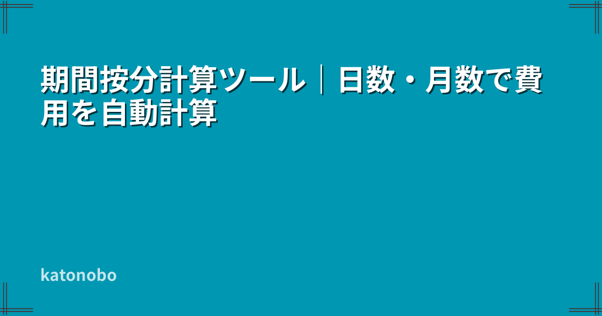 このツールは、入力した金額と期間に基づいて按分額を計算する補助ツールです。 前払費用、保険料、家賃、売上計上、決算処理などで実際にどの金額を計上するかは、契約内容、会計方針、税務上の取扱いによって変わる場合があります。
