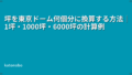 東京ドーム1個分の面積・坪数・ヘクタール・体積について詳しく知りたい場合は、東京ドーム1個分は何㎡?面積・坪・ヘクタール・体積をわかりやすく解説も参考にしてください。