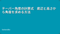 軸や円すい形状のテーパーでは、直径差を使うことがあります。この場合、直径差全体を高さとして扱うのか、片側の変化量として扱うのかで角度が変わります。