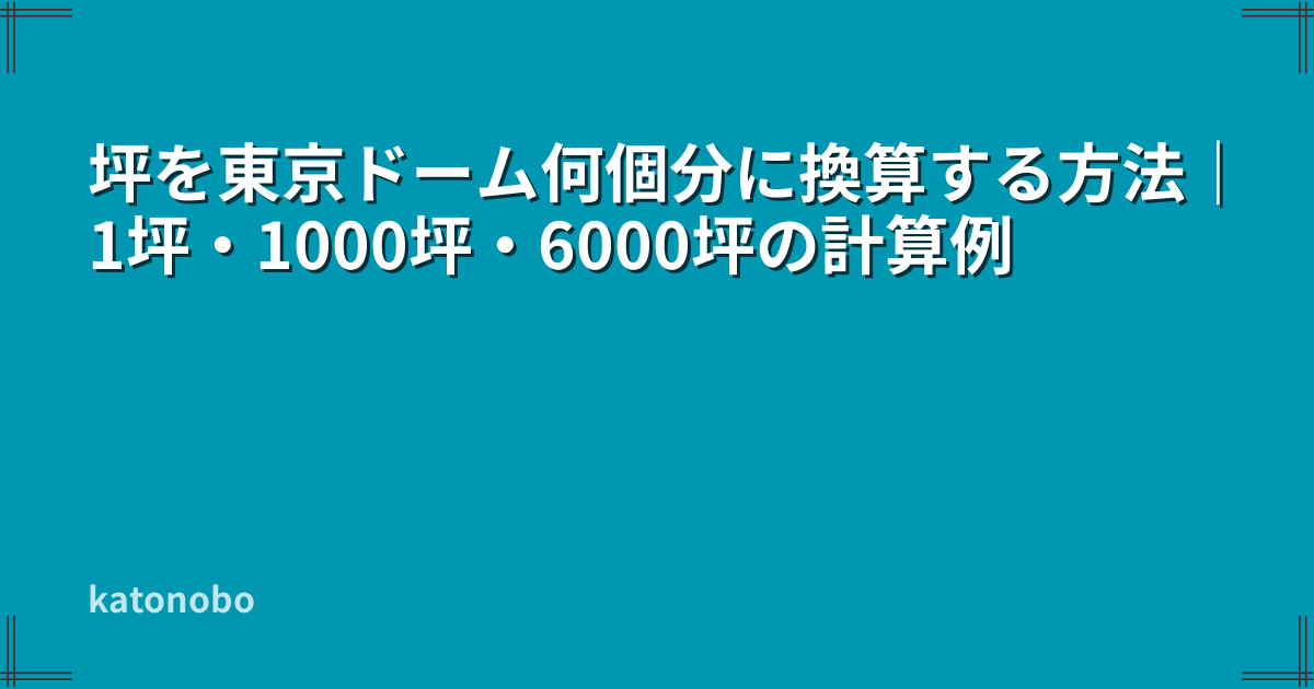 この記事では、1坪・1000坪・6000坪などを例に、坪を東京ドーム何個分に換算する方法をわかりやすく解説します。