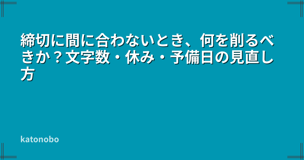 締切に間に合わないとき、何を削るべきか?文字数・休み・予備日の見直し方